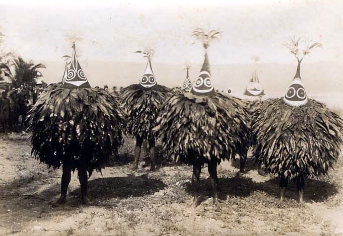 Dans van de Duk-Duk stam, Gazelle Peninsula, Papoea-Nieuw-Guinea, fotograaf en datum onbekend