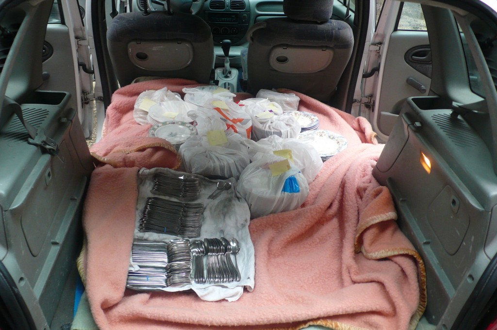 de taxi voor het bestek en serviesgoed naar de oranjerie