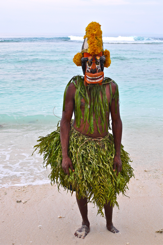 Sing-sing kostuum van een lid van de Malaganstam, New Ireland Island, Papoea-Nieuw-Guinea, foto Rita Willaert